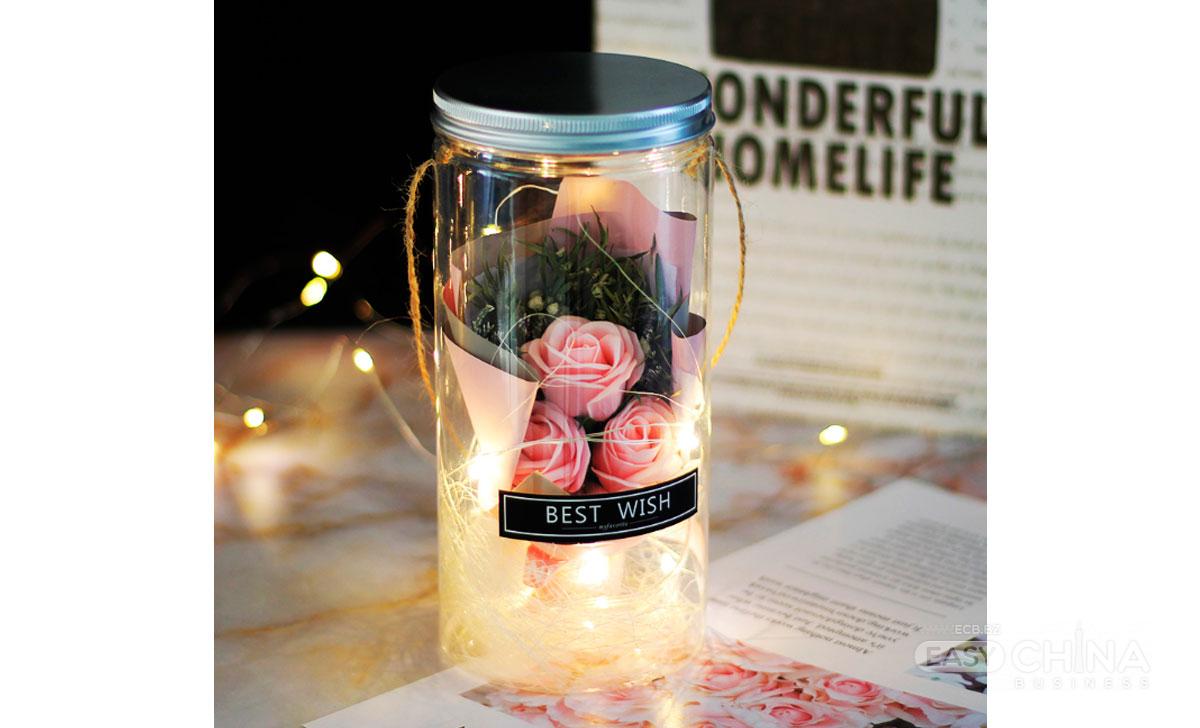 мыло в виде бутонов роз, декор, led-подсветка пластиковая банка