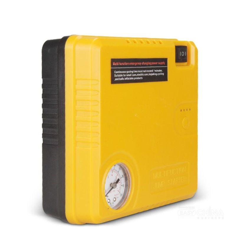 насос со встроенной батарей, адаптер для зарядки (евро вилка), адаптер для зарядки от прикуривателя, переходники для насоса, стартовые провода;